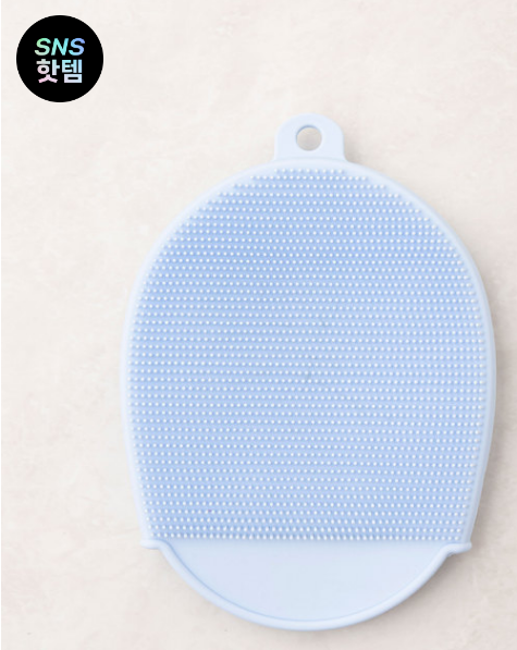 실리콘 샤워 브러쉬 블루(양면 클렌징 솔) 한쪽은 미세모, 다른 쪽은 실리콘 – 얼굴까지 활용 가능 ₩1,000